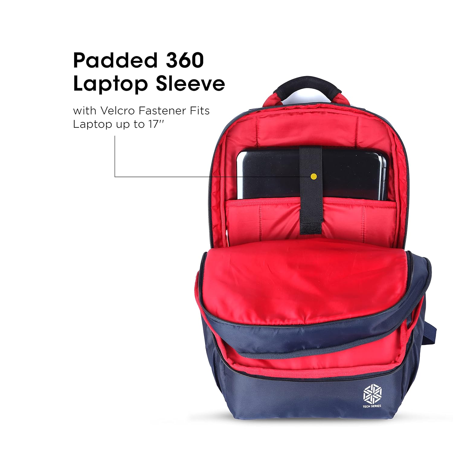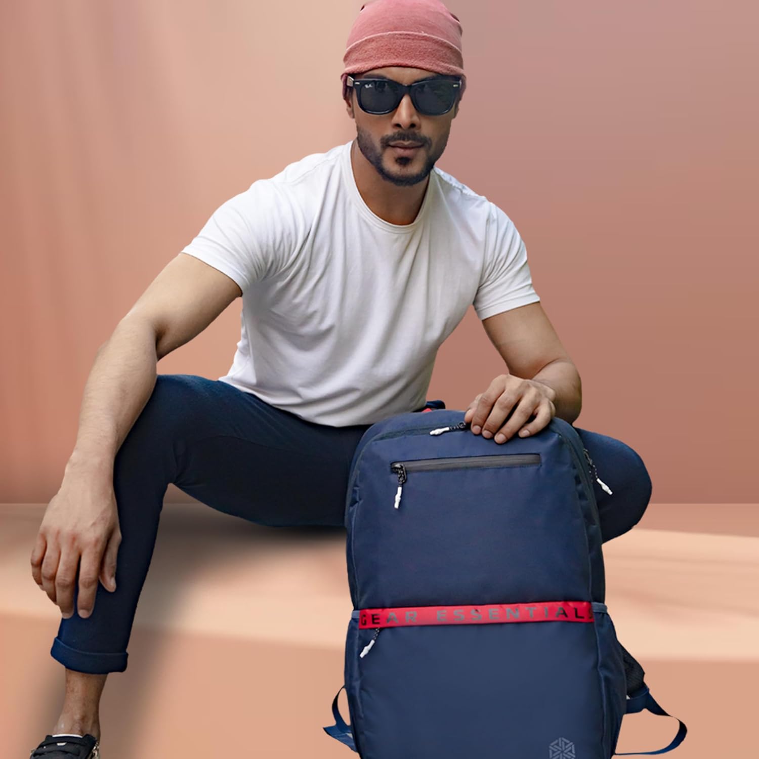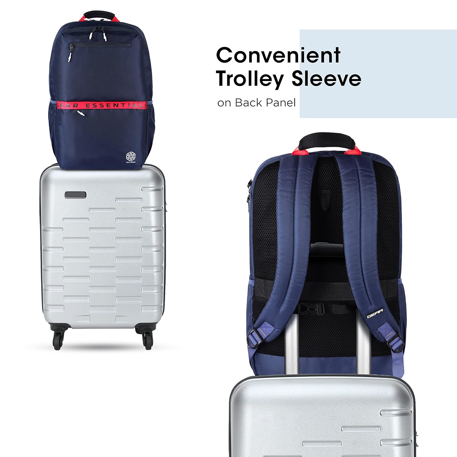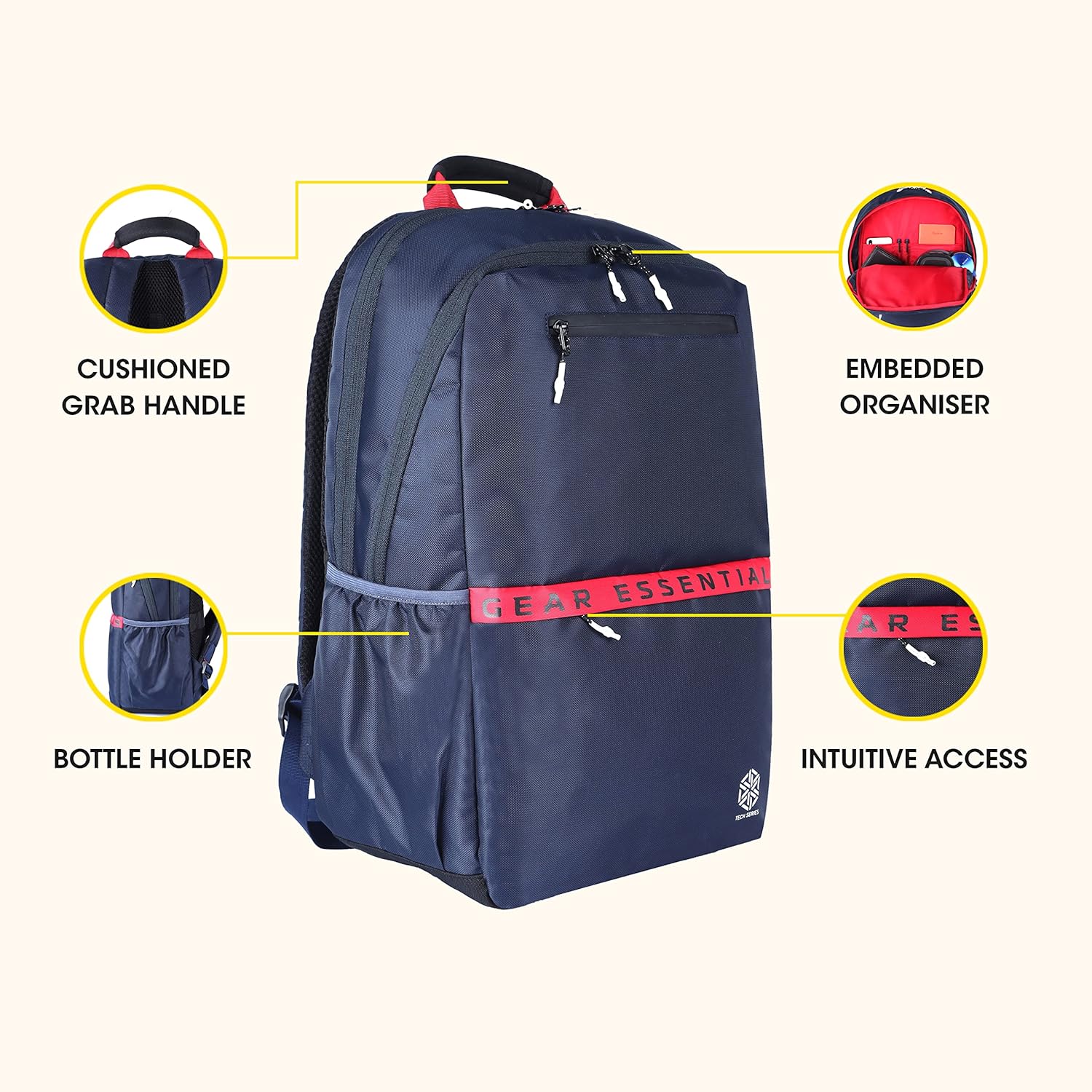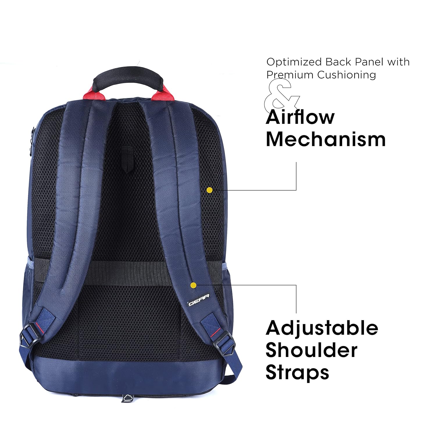 Gear LOGI-Q 27L Backpack with Trolley Sleeve for Men/Women (Navy-Red)
