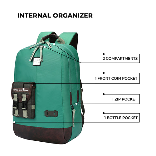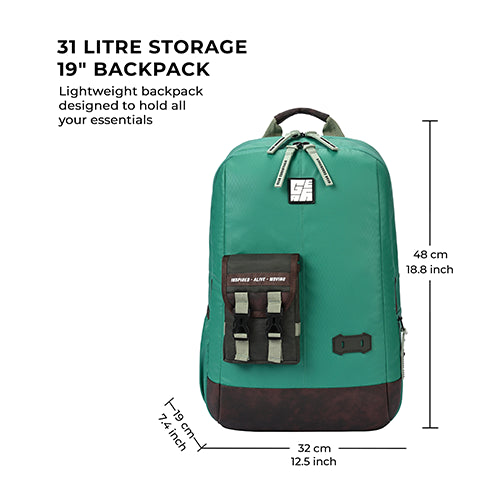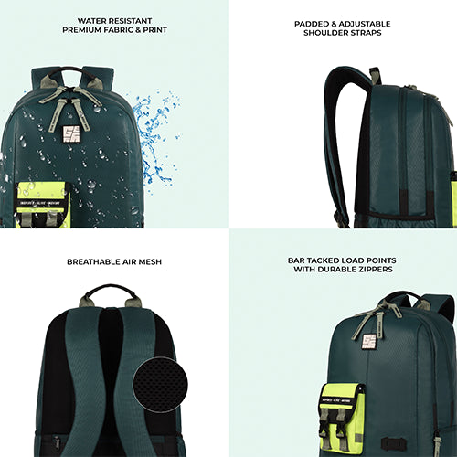 Hipster 31L anti theft water resistant backpack (Teal-Fl. Green)