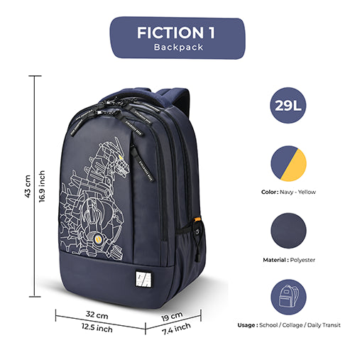 Fiction 1 Backpack 17 Inch (Navy-Yellow)