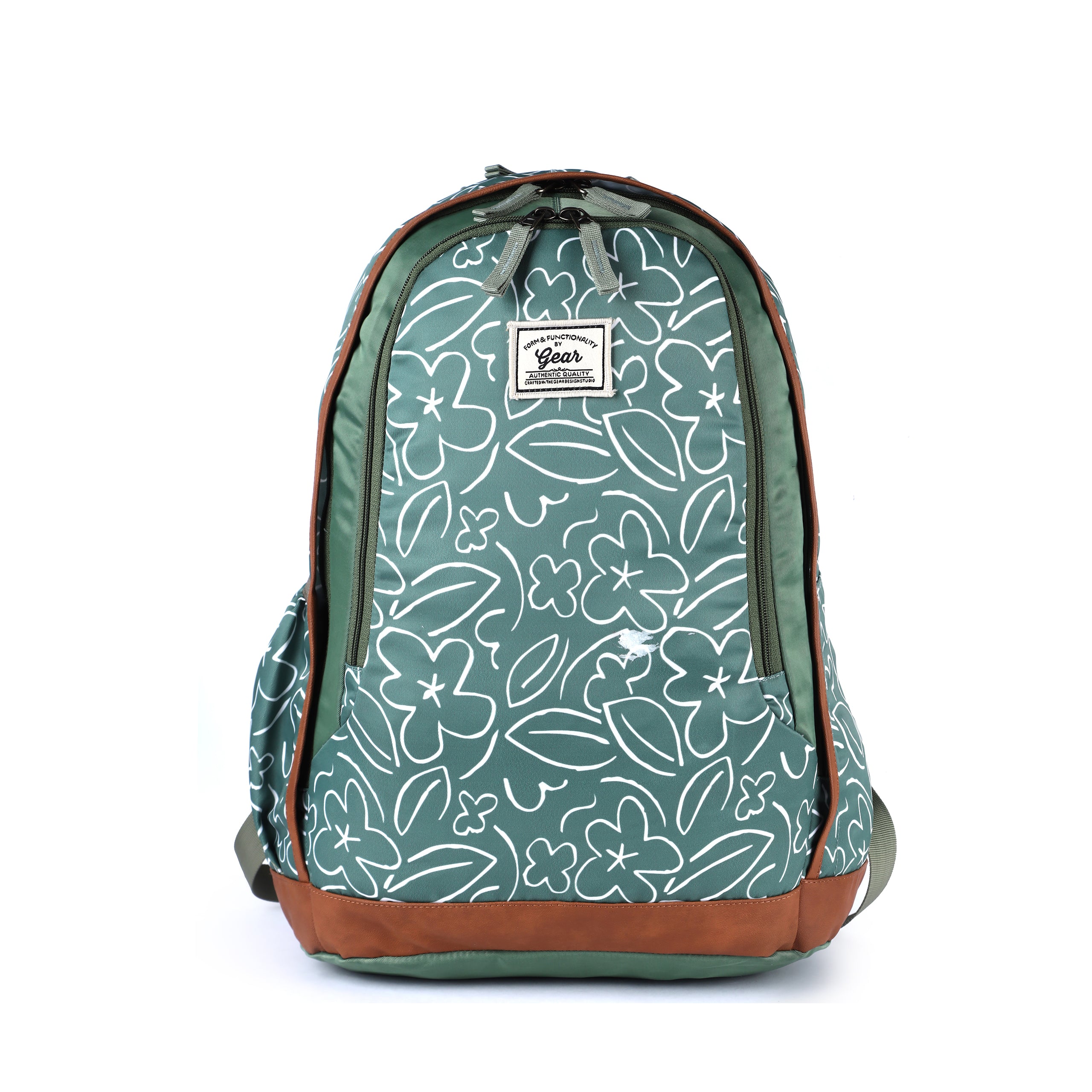 Gear Triumph Floral Print 32L School/College Backpack With Raincover (Blue-Tan)