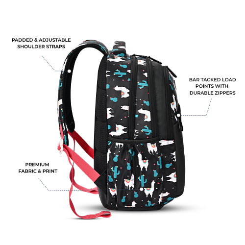 Llama Backpack 17 Inch (Black-Pink)