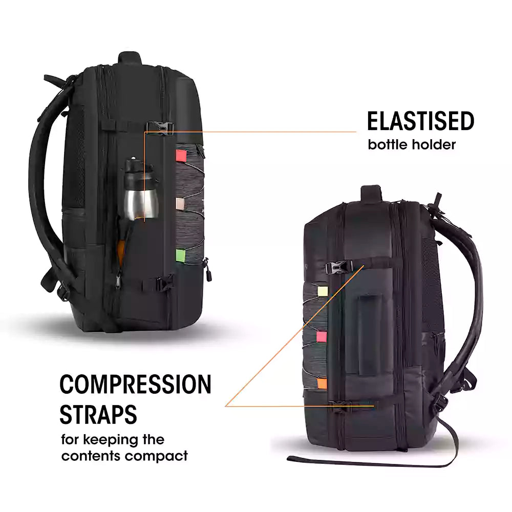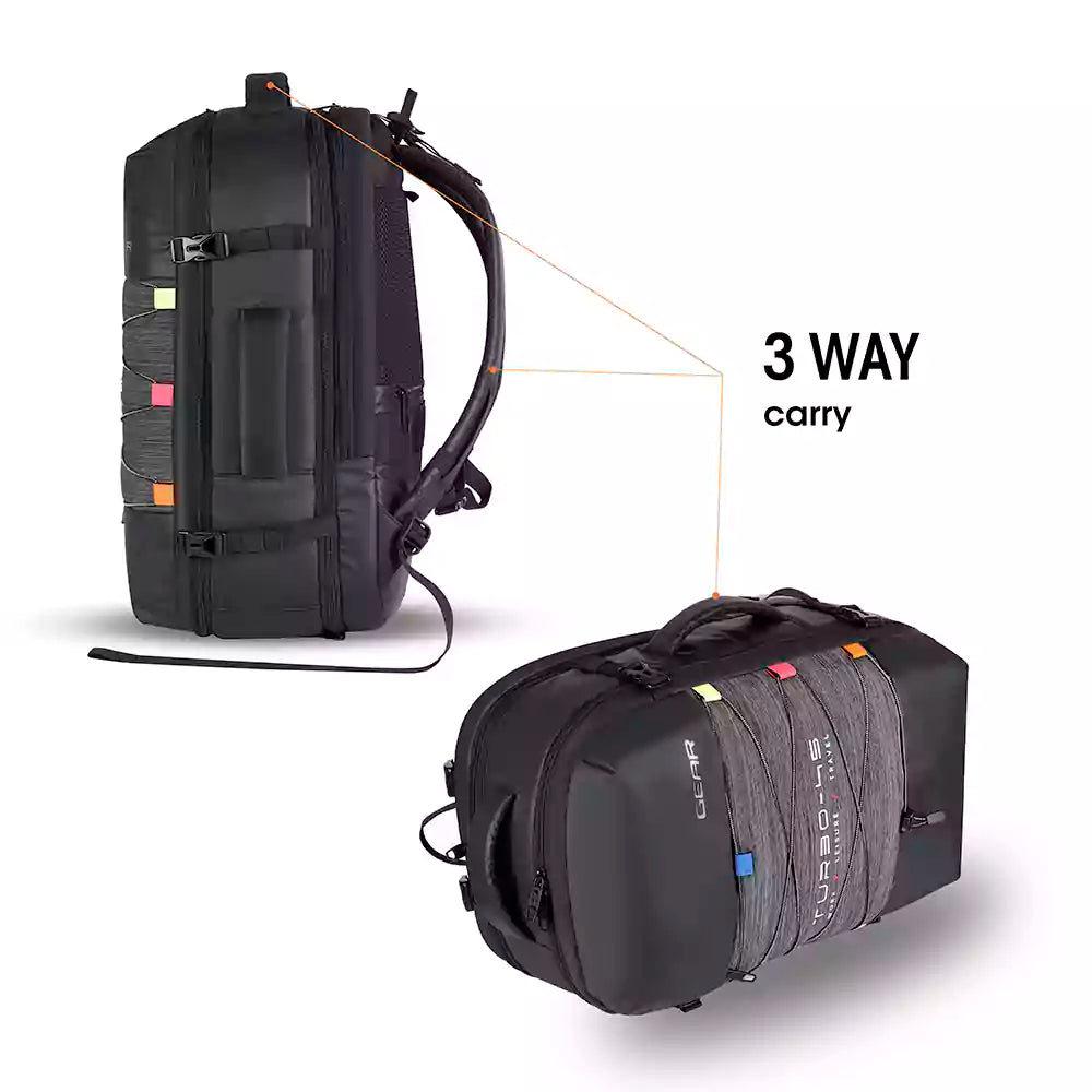 Gear Turbo 45L Expandable Antitheft Laptop Backpack With Raincover (Black)