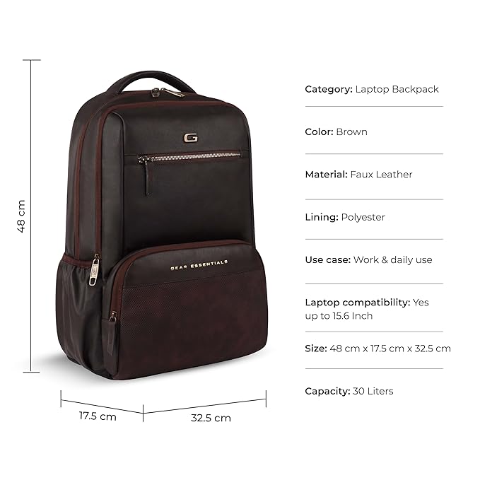 Heritage faux leather laptop backpack 30L (Brown)