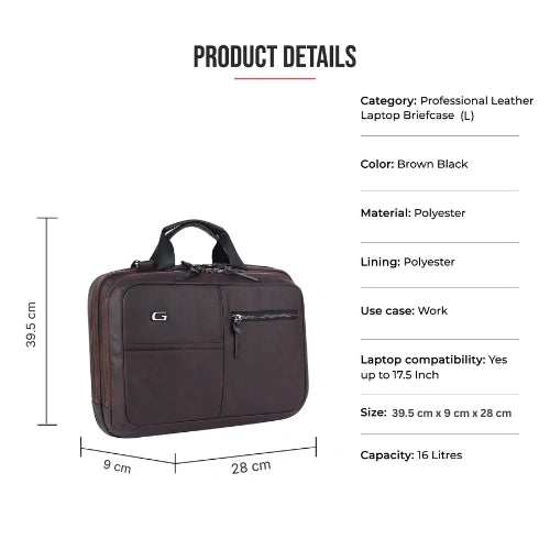 Professional leather laptop briefcase 10L (Brown)