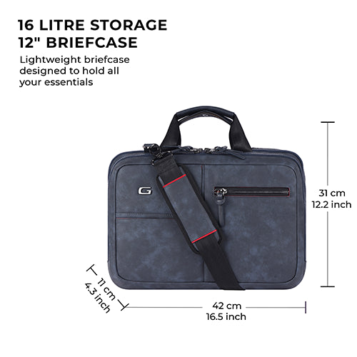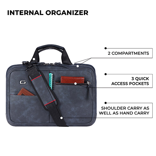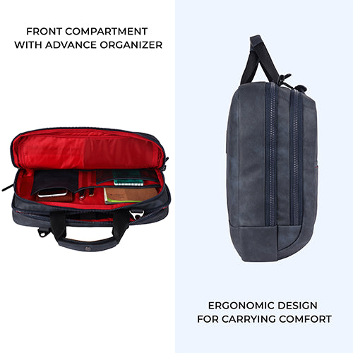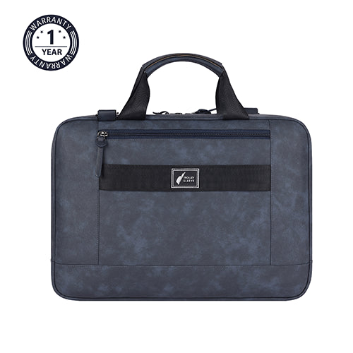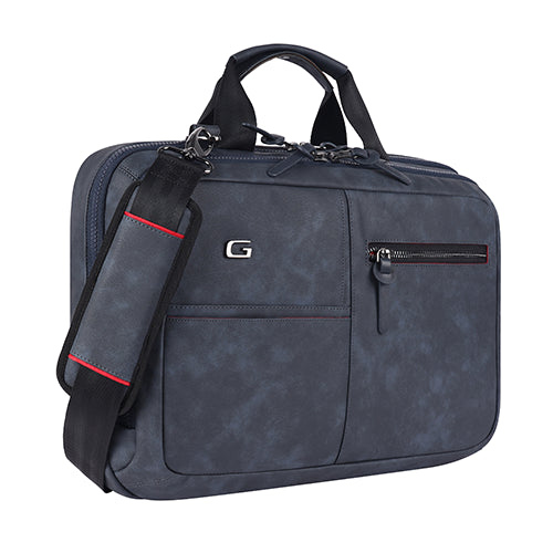 Professional leather laptop briefcase XL 16L (Navy - Black)