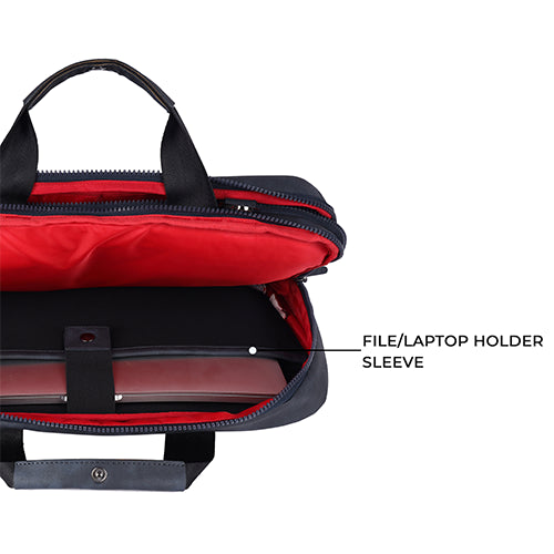 Professional leather laptop briefcase XL 16L (Black - Red)