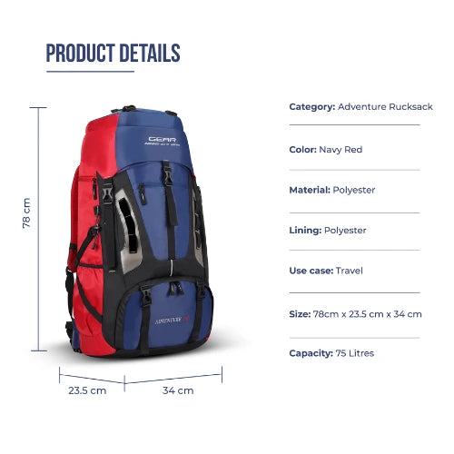 ADVENTURE RUCKSACK 75L (NAVY - RED)