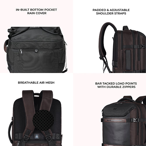 Gear Turbo 4 Anti Theft Faux Leather with Raincover 40L (Brown Black)