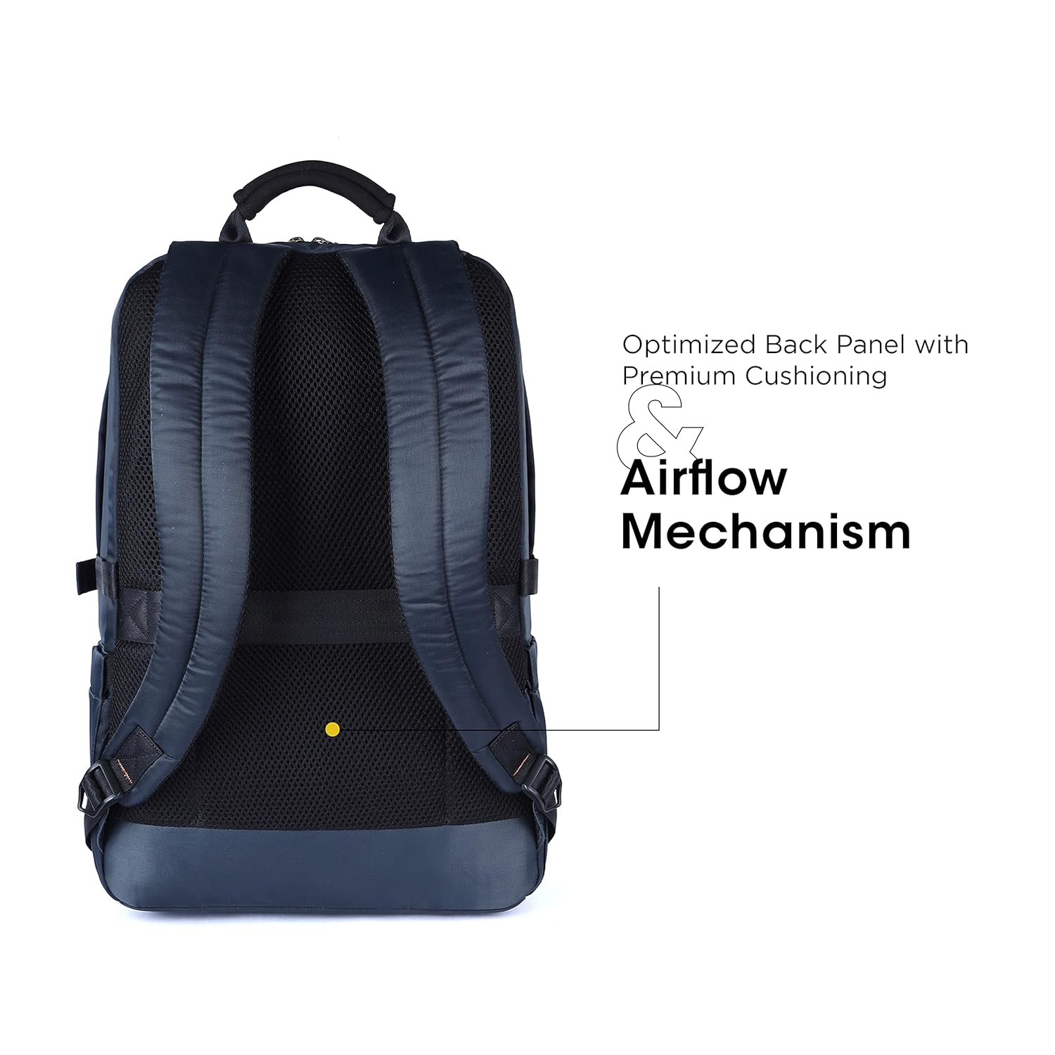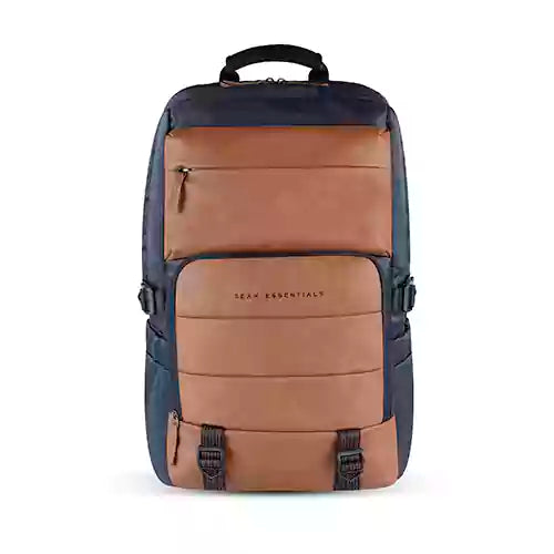 Gear Double Decker 31L Faux Leather Anti-Theft Laptop Backpack (Navy-Tan)
