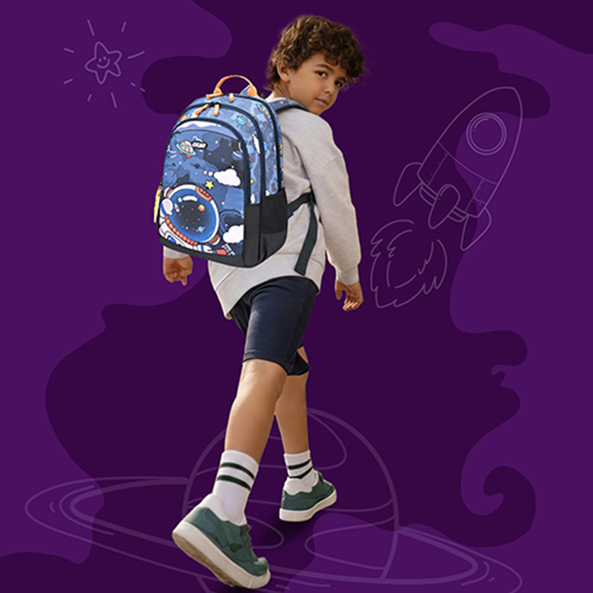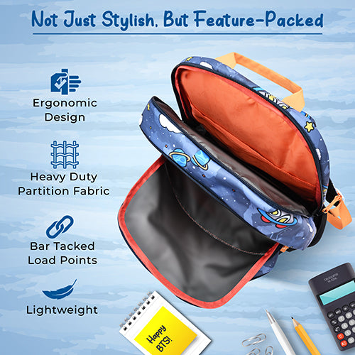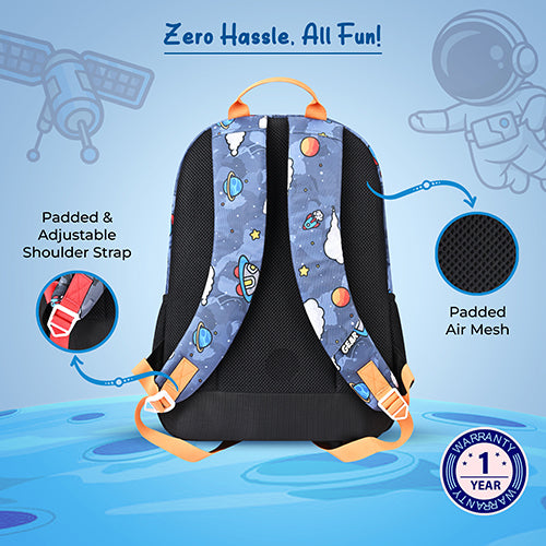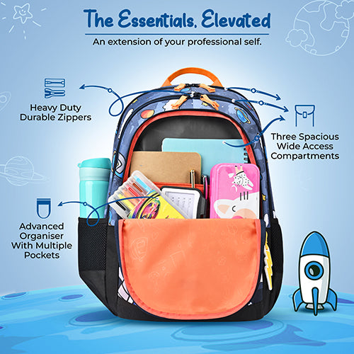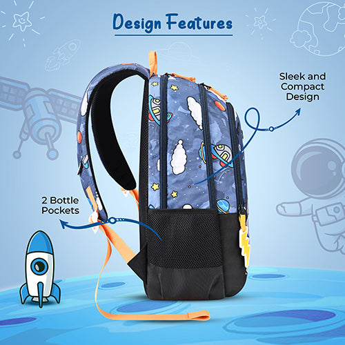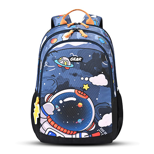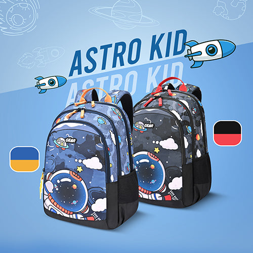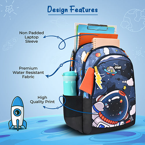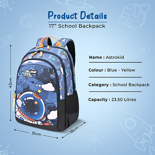 Gear Astro Kid 17"/23.5L Medium Water Resistant School Bag | Casual Backpack | Daypack | Travel Backpack | Kids Bag for Boys/Girls (Blue - Yellow)