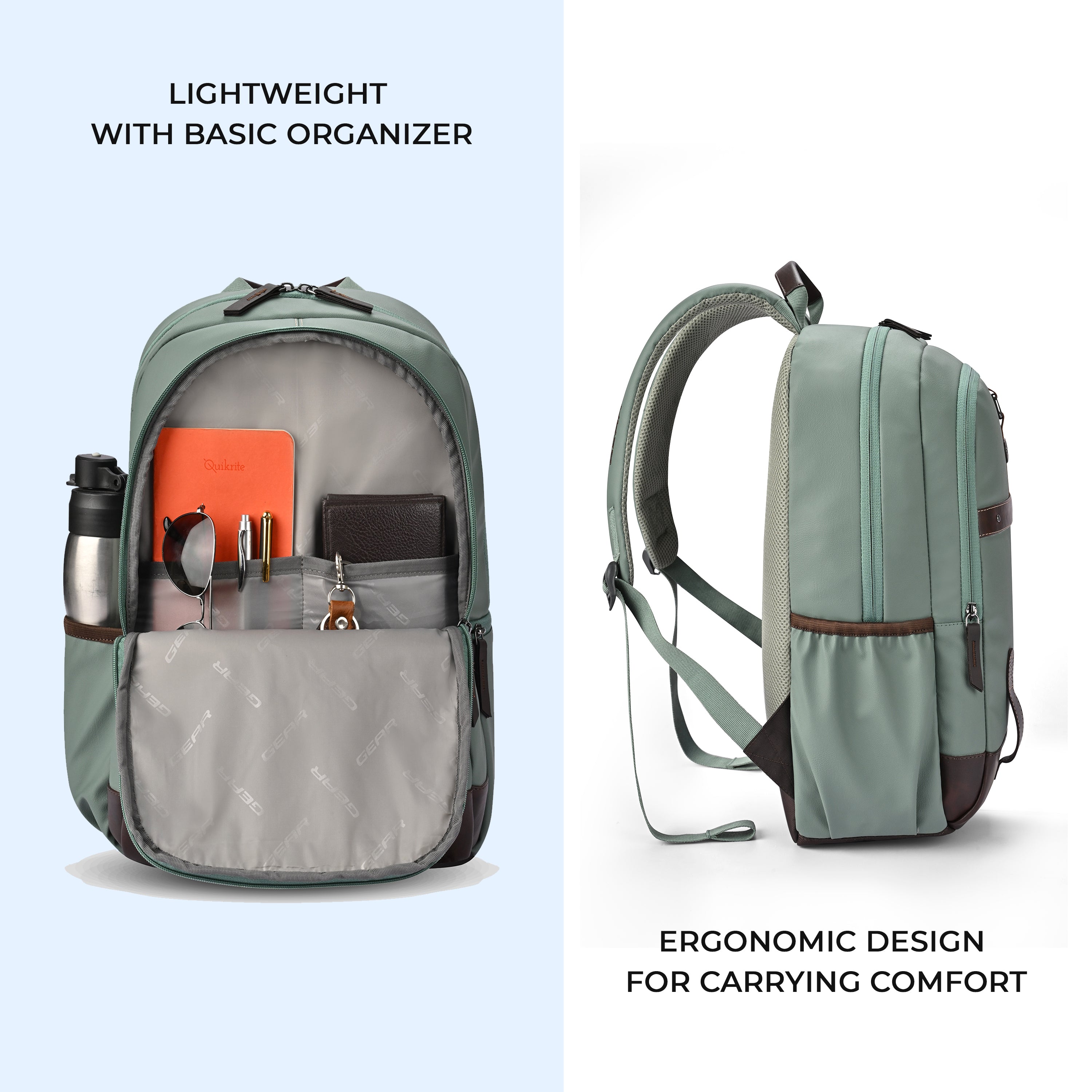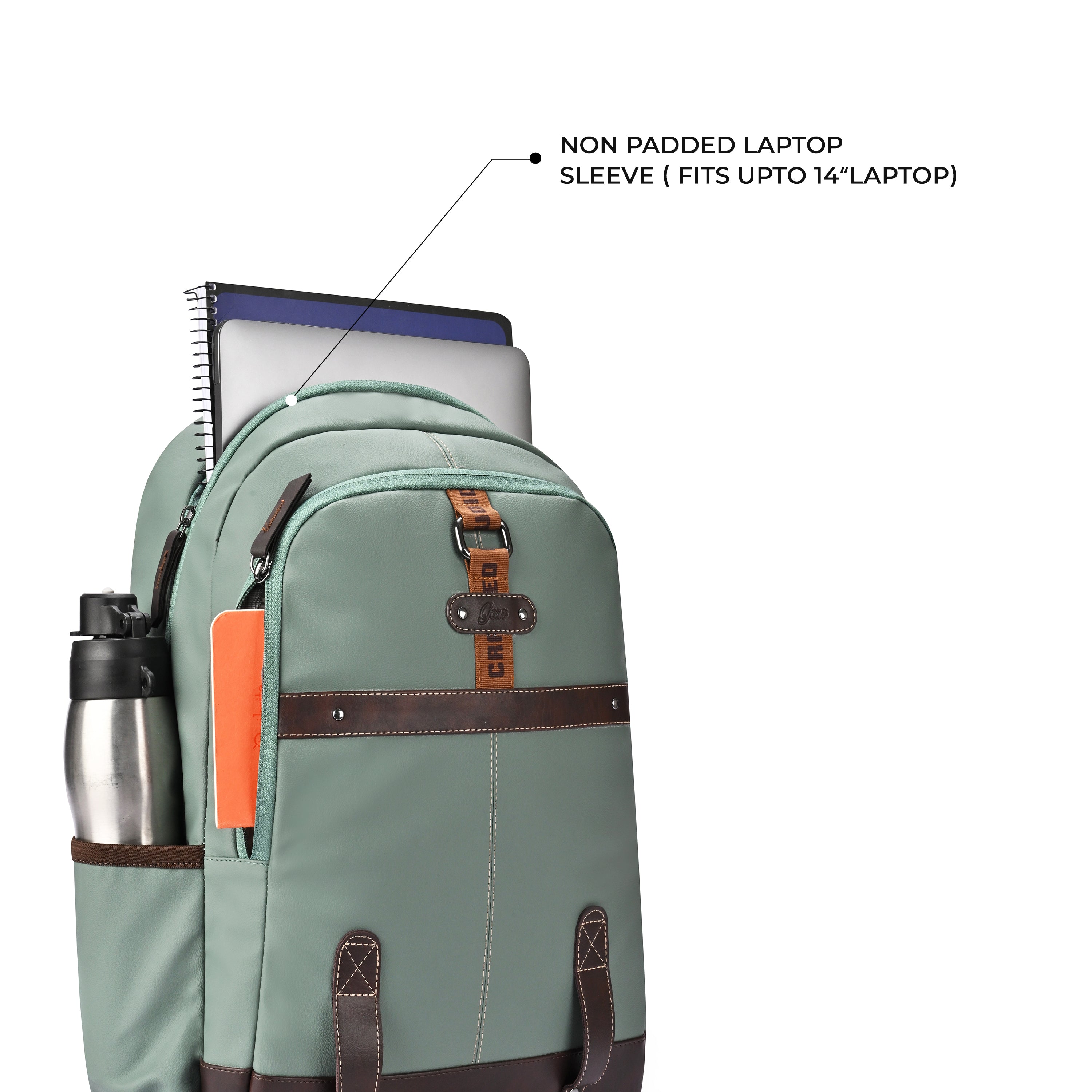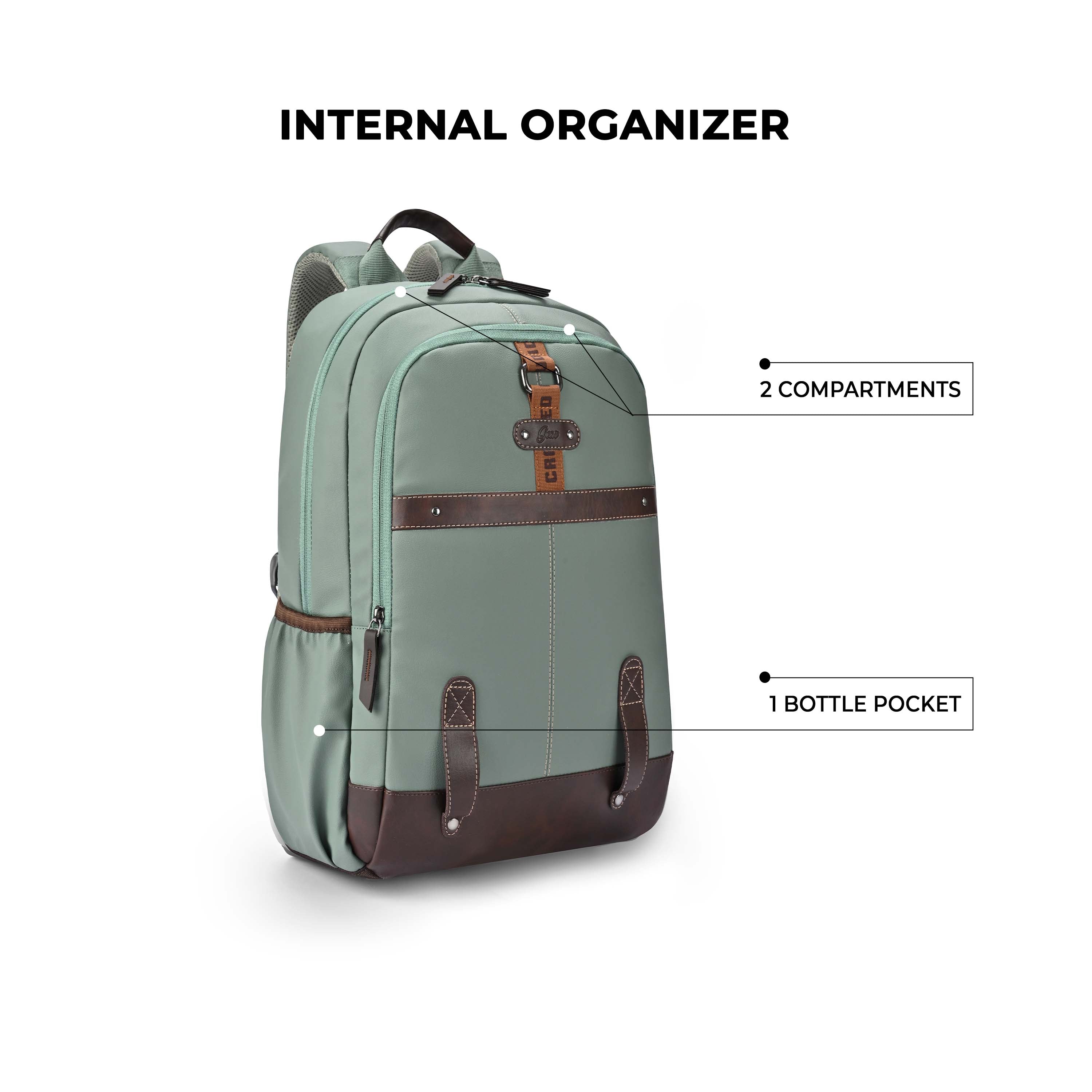 Classic 4 Faux Leather Without Anti Theft 16 Laptop Backpack (Sage Green Brown)