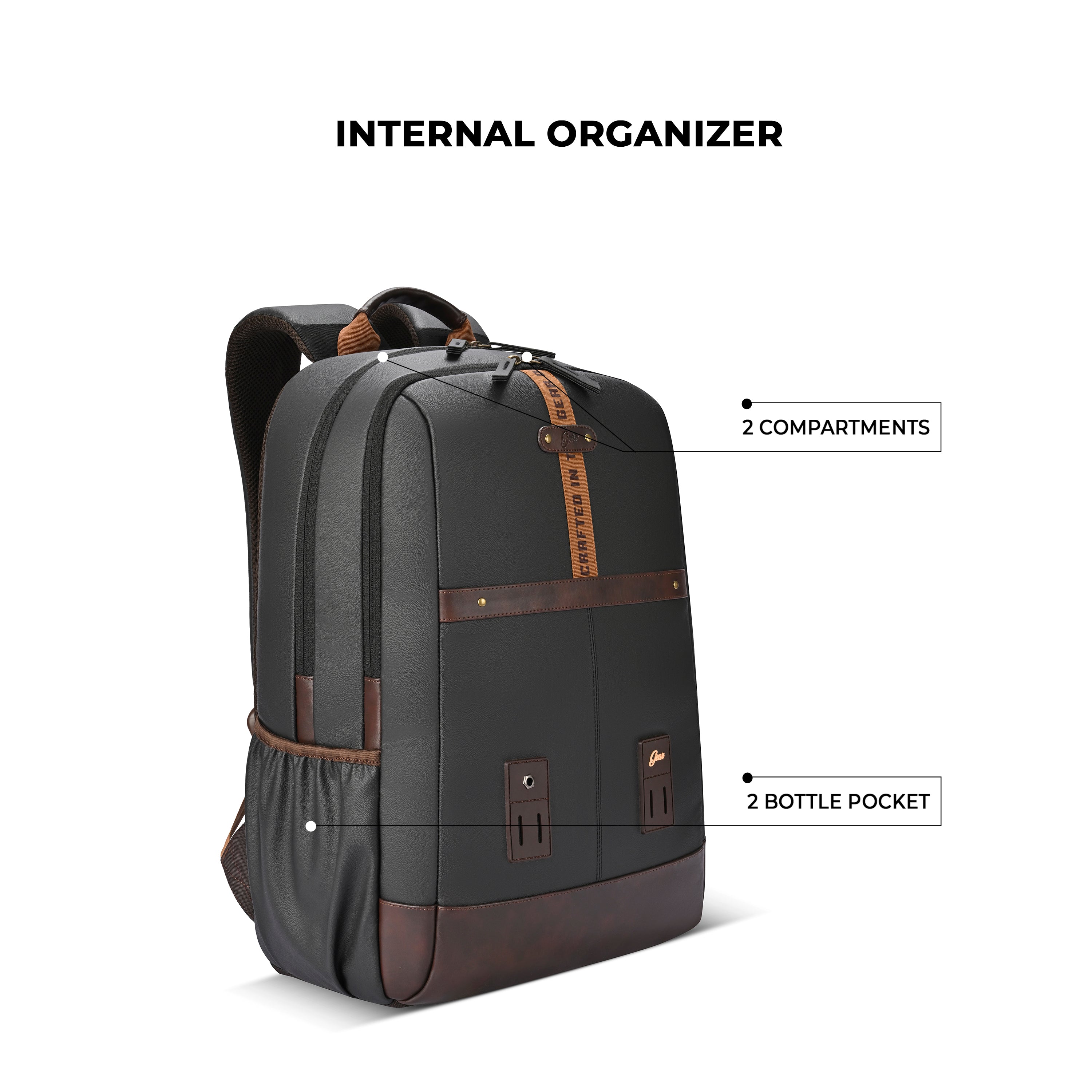 Classic 4 Faux Leather (Without Antitheft) Laptop Backpack (Black Brown)