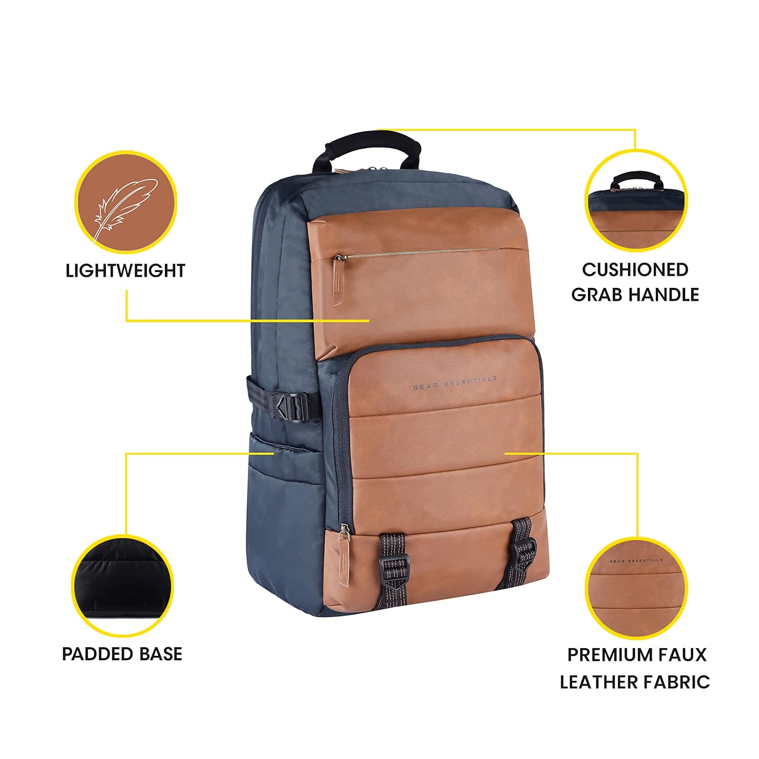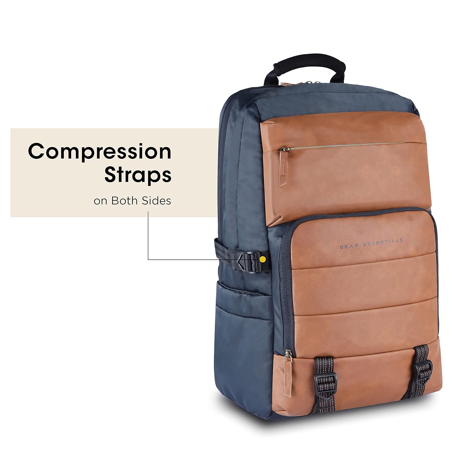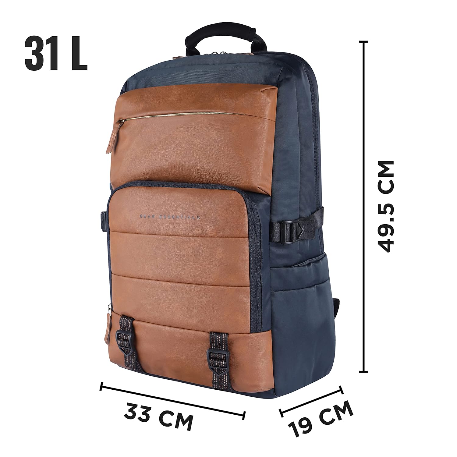 Gear Double Decker 31L Faux Leather Anti-Theft Laptop Backpack (Navy-Tan)