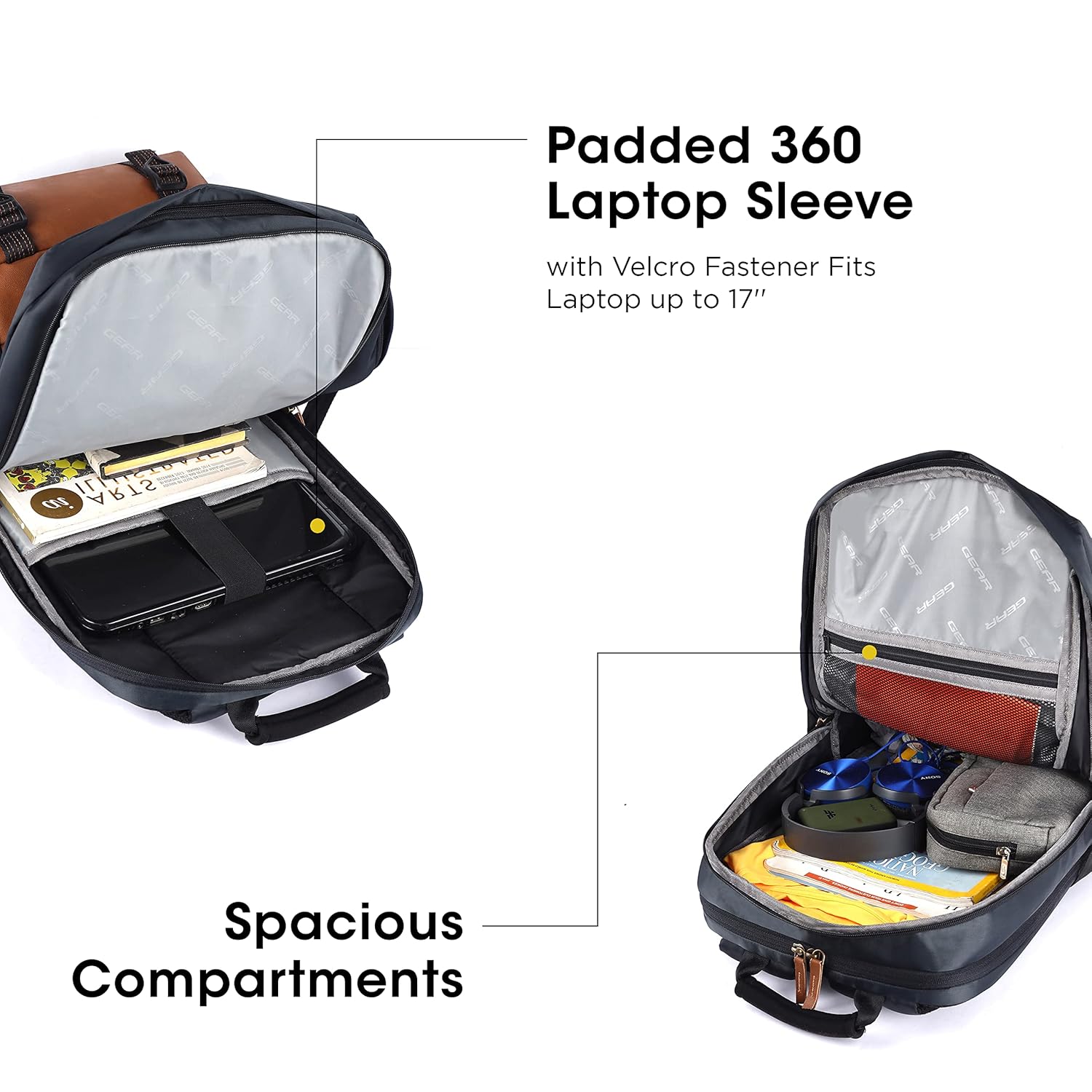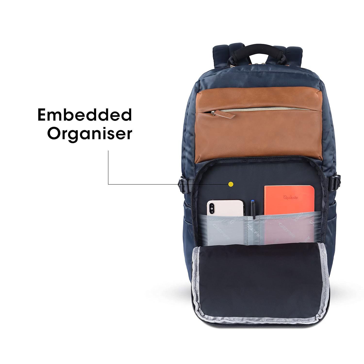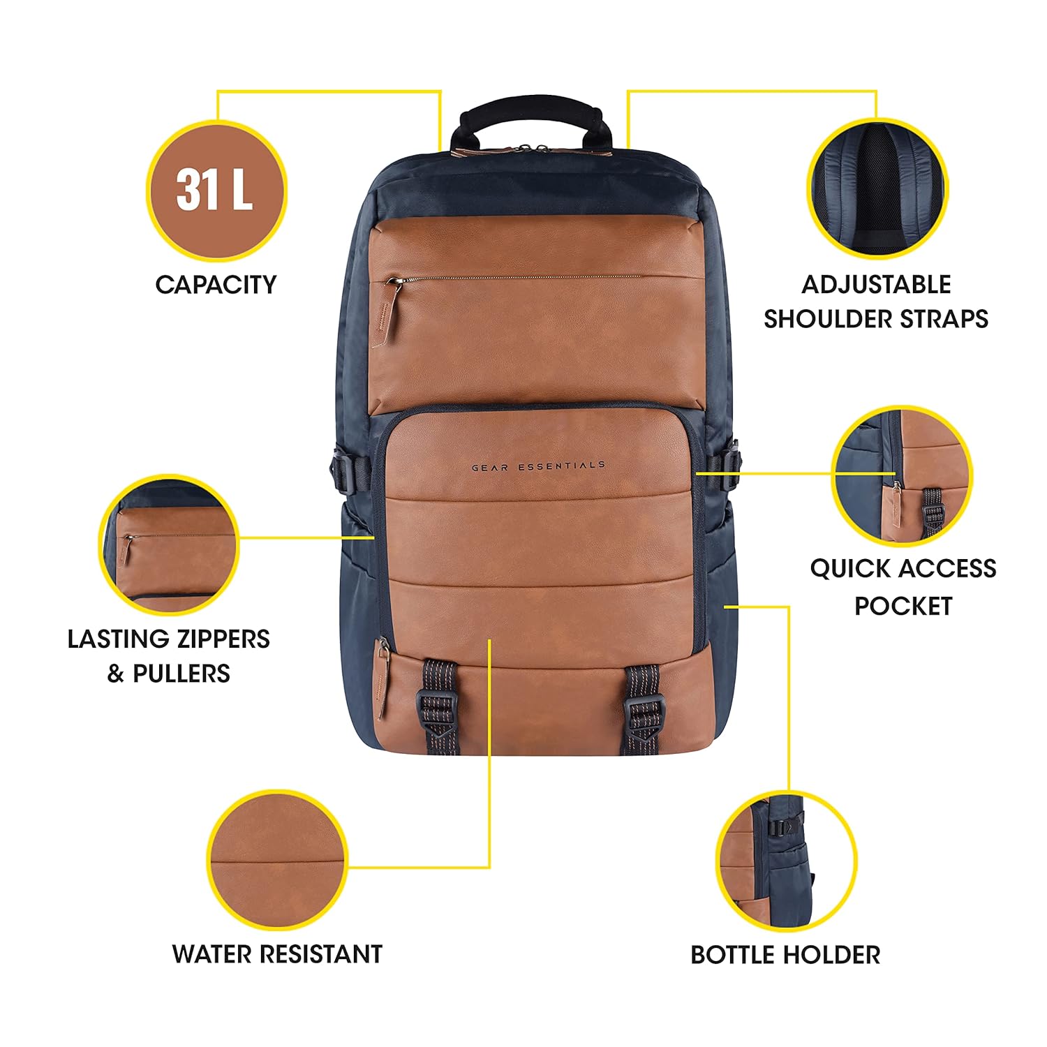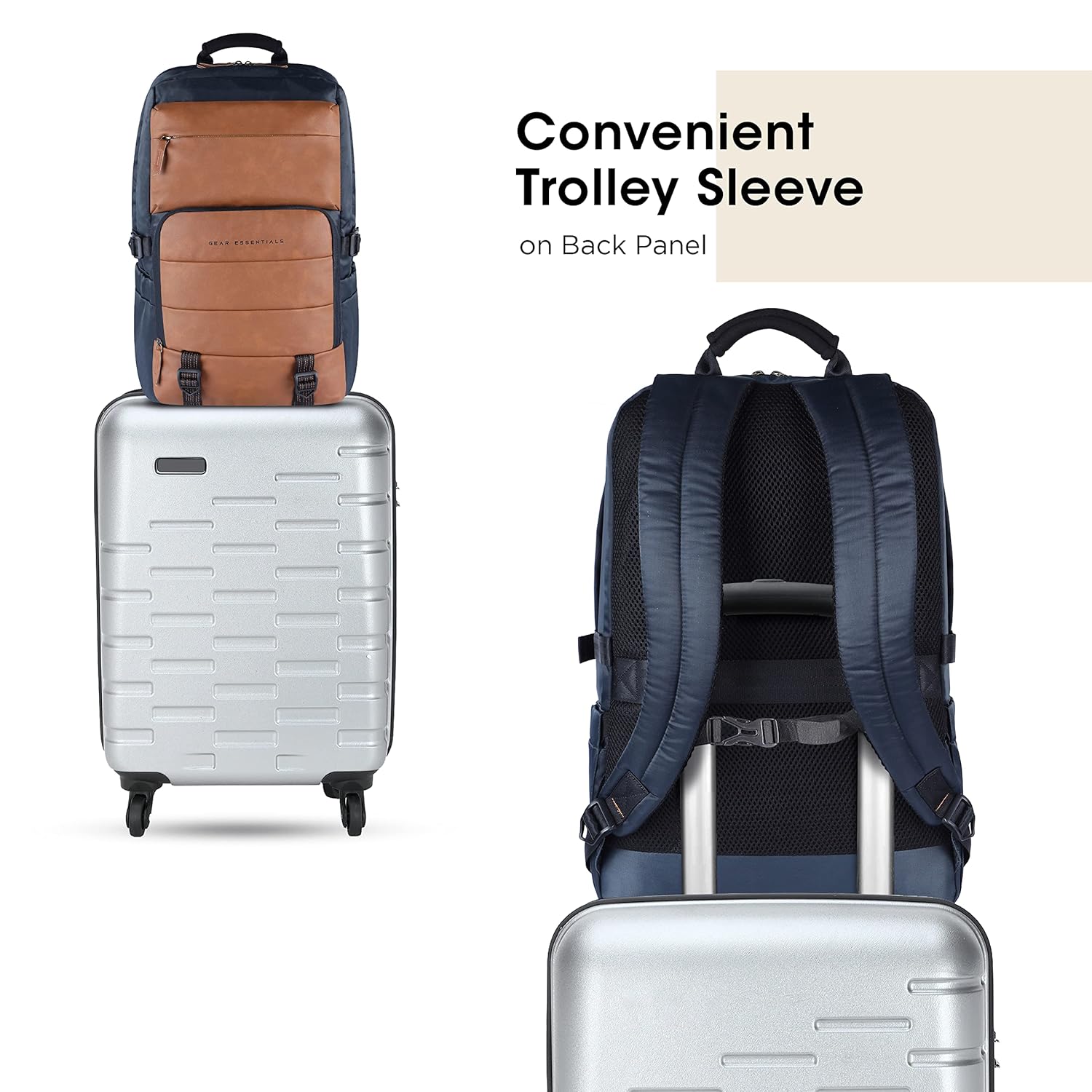 Gear Double Decker 31L Faux Leather Anti-Theft Laptop Backpack (Navy-Tan)