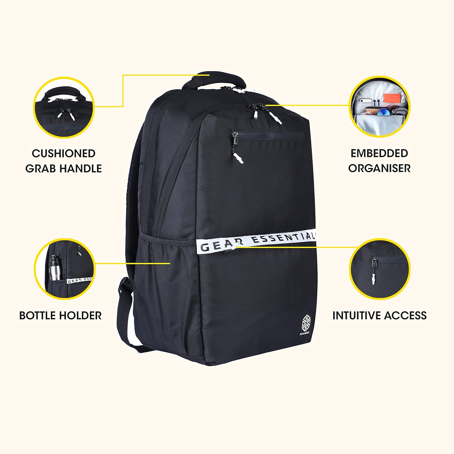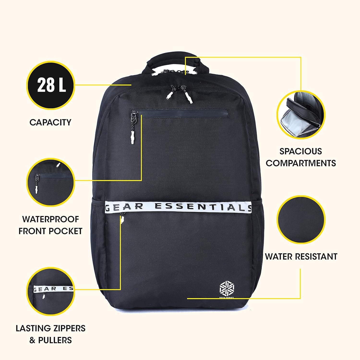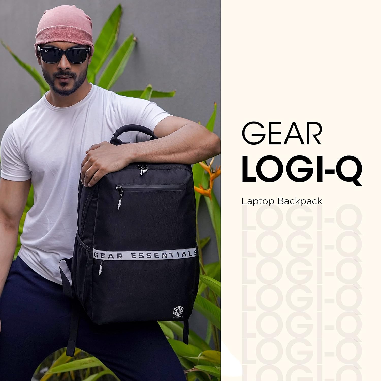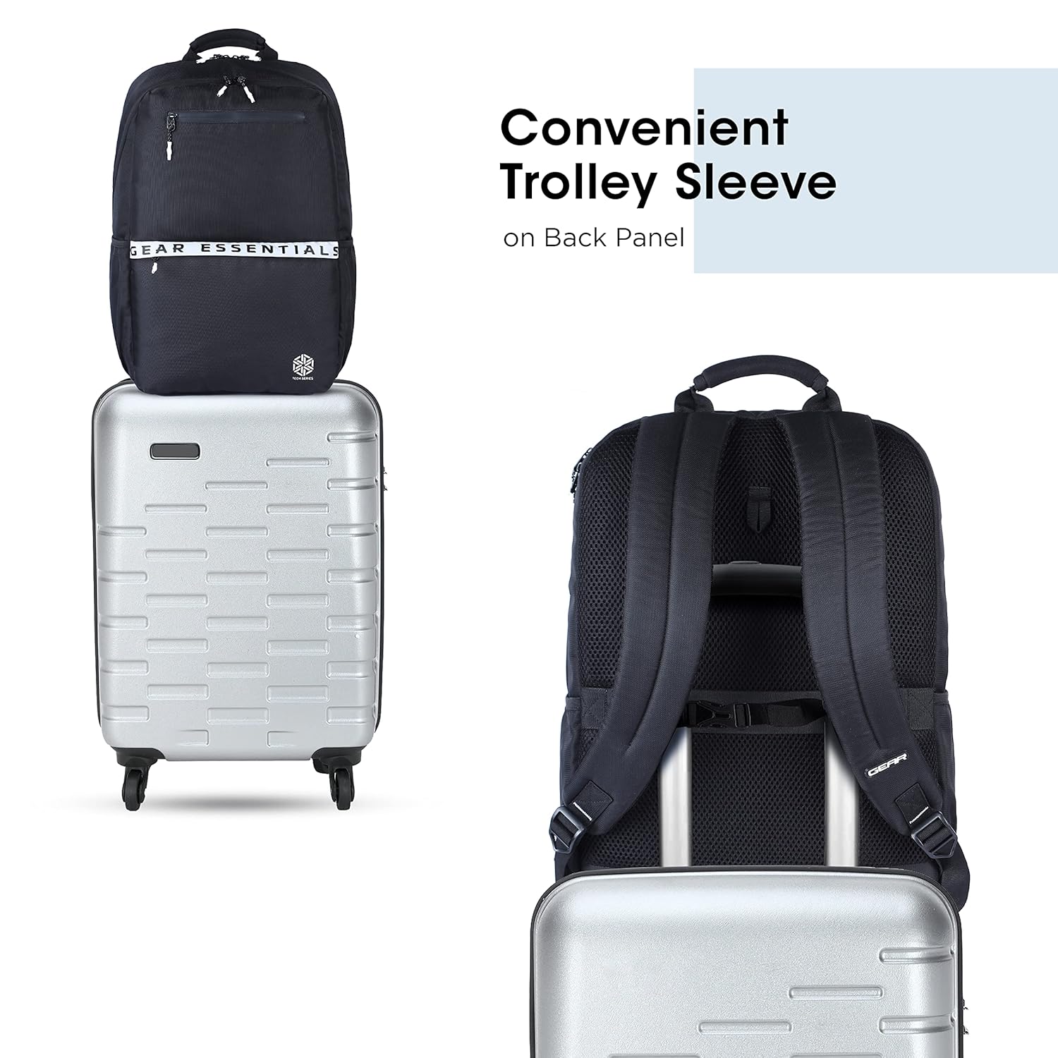 Gear LOGI-Q 27L Backpack with Trolley Sleeve for Men/Women (Black-White)