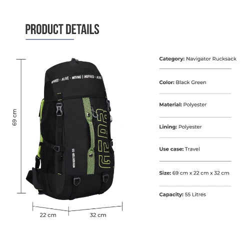 NAVIGATOR RUCKSACK 55L (BLACK - GREEN)