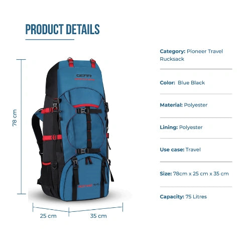 PIONEER TRAVEL RUCKSACK 75L (BLUE-BLACK)