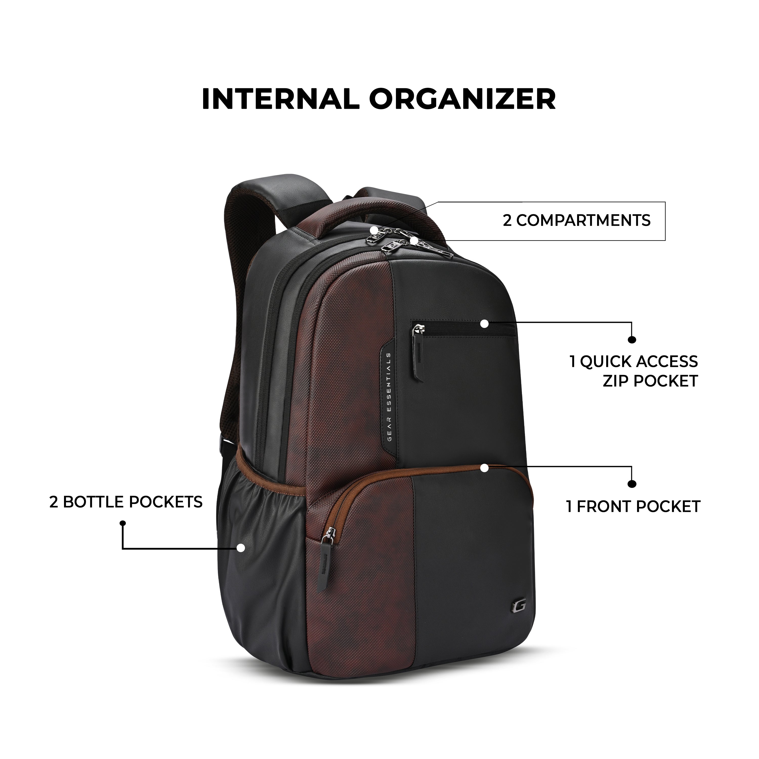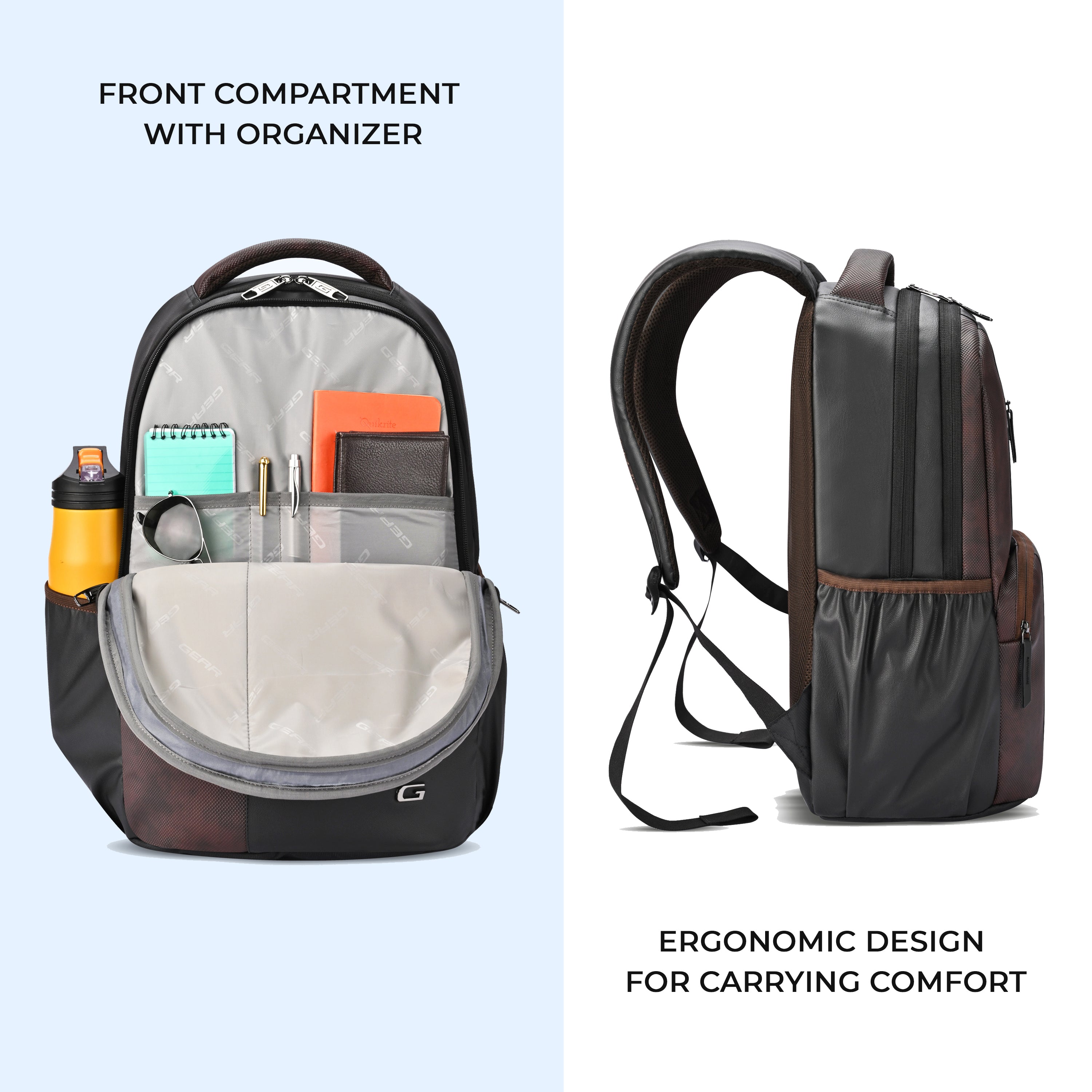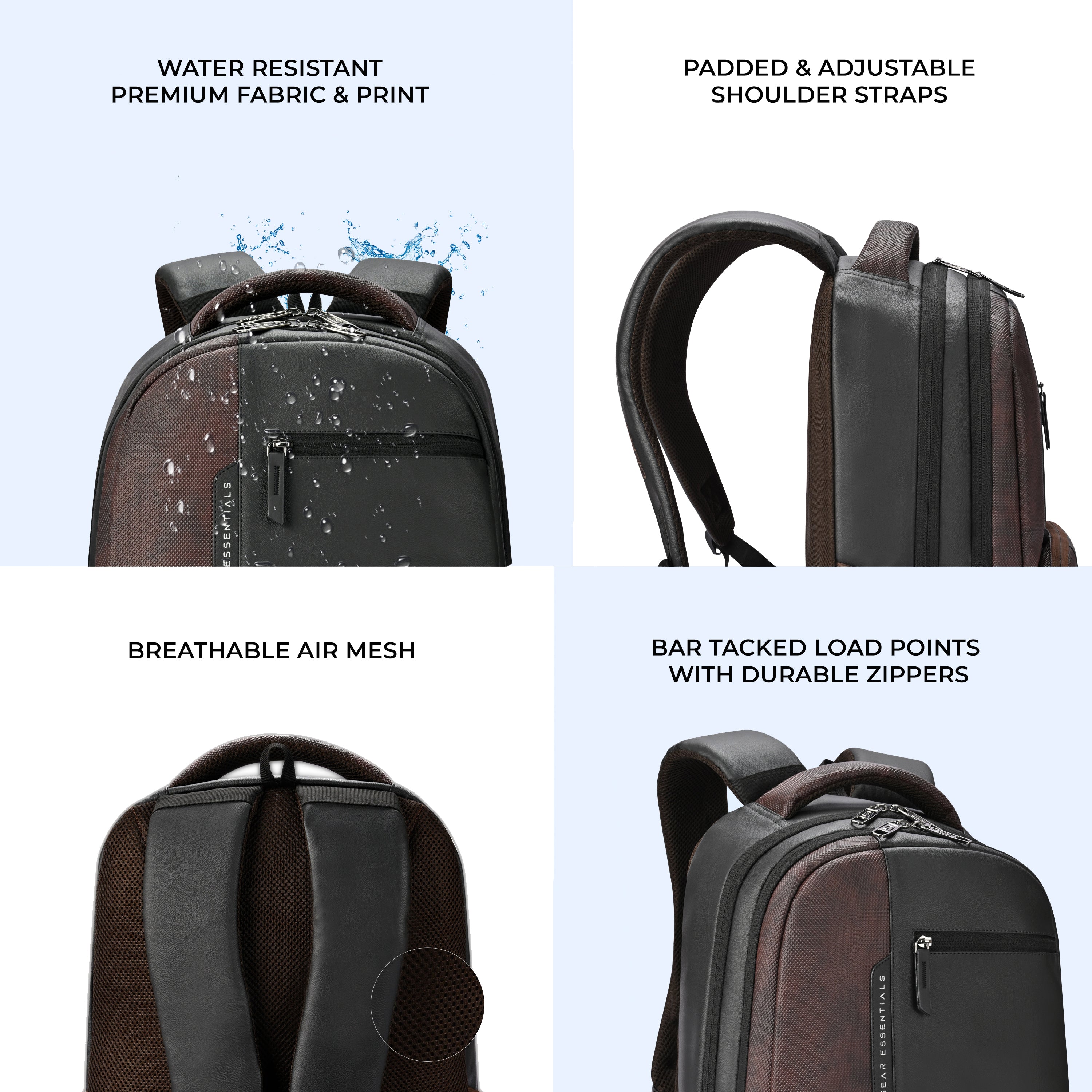 Vintage 2 Faux Leather (Without Antitheft) Laptop Backpack (Black Brown )